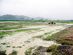 6月から8月には、背の高い雑草に覆われていた江ノ村地区の休耕田で、人力プラス大型重機で約5日かけて草を刈りました。その後は整地して水を張り、7月にはえさ場予定地(約1.5ha)に約80kgのモミと肥料を撒きました。