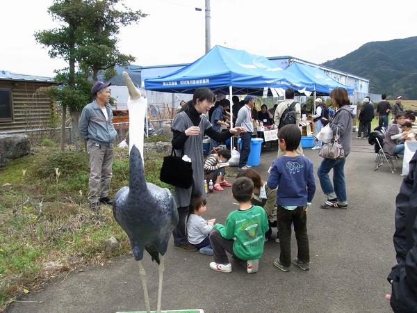 平成22年2月27日、「第1回 四万十つるの里祭り」を開催しました。このお祭りは、四万十川・中筋川流域で行っている「ツルの里づくり」の取り組みをより多くの地域のみなさんに知っていただきたいという会員の発意から開催が決定したもので、当日は約500人の人出でにぎわいました。