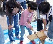 小さな子どもでも体験できる巣箱づくりコーナーを設置。初めてノコギリを使うという子どもも上手に作っていました。
