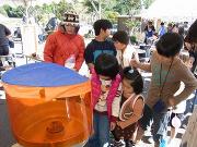 子どもたちにヨーヨー釣りとわたがし作りを無料で体験してもらうコーナーは、テントの前に行列ができるほどのにぎわいでした。子どもたちはわたがしがなかなか思うように丸くならず苦労している様子でしたが、自分で作ることができて、とても嬉しそうでした。