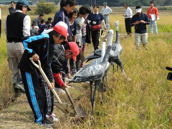 | 子どもたちがデコイ設置をお手伝いしてくれました〜平成24年度 第2回ツルの自然体験学習会 |