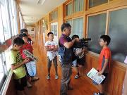 下:テレビ取材に元気よく応じる子どもたち |