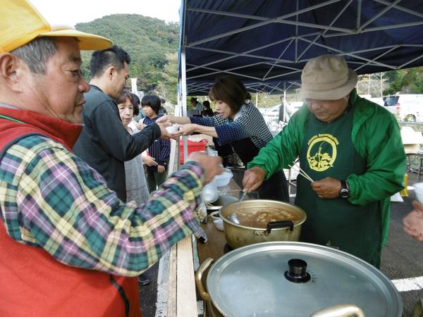 例年になく暖かい小春日和の一日となったこの日は、親子連れなど約800人が訪れ、四万十川河畔で摘んだ野草とツルの越冬地づくりが行われている江ノ村地区産の有機米を使ったおかゆや、田舎寿司などに舌鼓を打ちました。