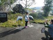 ツルの越冬地整備を行っている江ノ村地区に設置しているデコイ(ツルの飛来を促す模型)のうち2体を展示しました。訪れた方々にツルの大きさや姿を実感してもらったり、一緒に記念撮影をしていただきました。