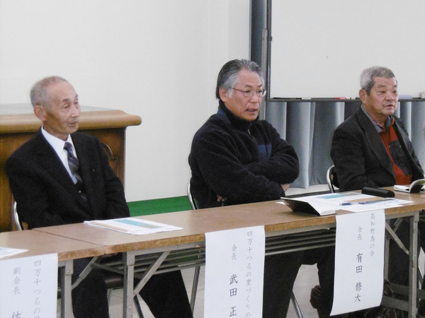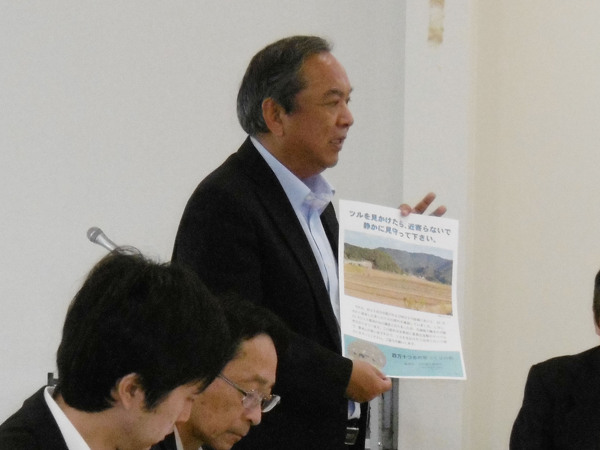 中:四万十つるの里づくりの会、高知野鳥の会、日本野鳥の会高知支部の三者で「ツルを見かけても近寄らないで」と訴えました