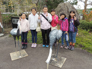 ツルのえさ場・ねぐら整備地に設置しているデコイ(ツルの飛来を促す模型)を2体展示し、ツルの大きさや姿を実感したり、一緒に記念撮影してツルに親しんでもらいました。
