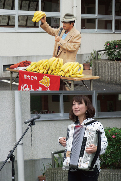 中:パフォーマンス(バナナの叩売り、アコーディオン演奏)