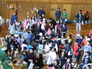 主催者挨拶の後、大人と子どもで区画を分けて餅投げを行いました。子どもたちにはお餅と一緒にお菓子も投げられ、会場は大いに沸きました。
