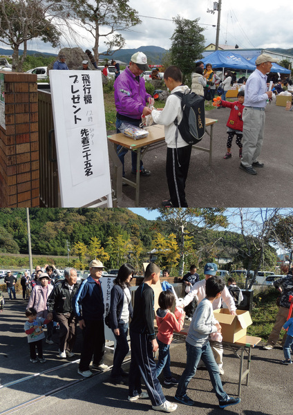 中:ゴム飛ばしグライダープレゼント、みかんプレゼント