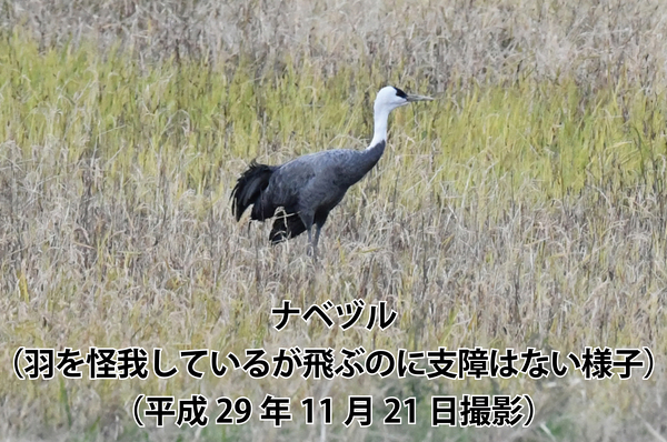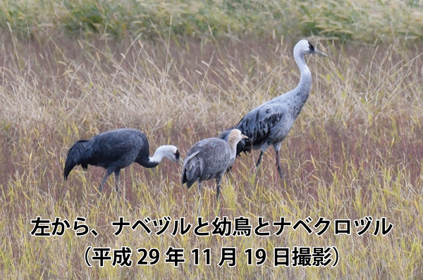 今年は毎年渡来するナベヅルのほか、ナベヅルとクロヅルの雑種であるナベクロヅルも来ています。