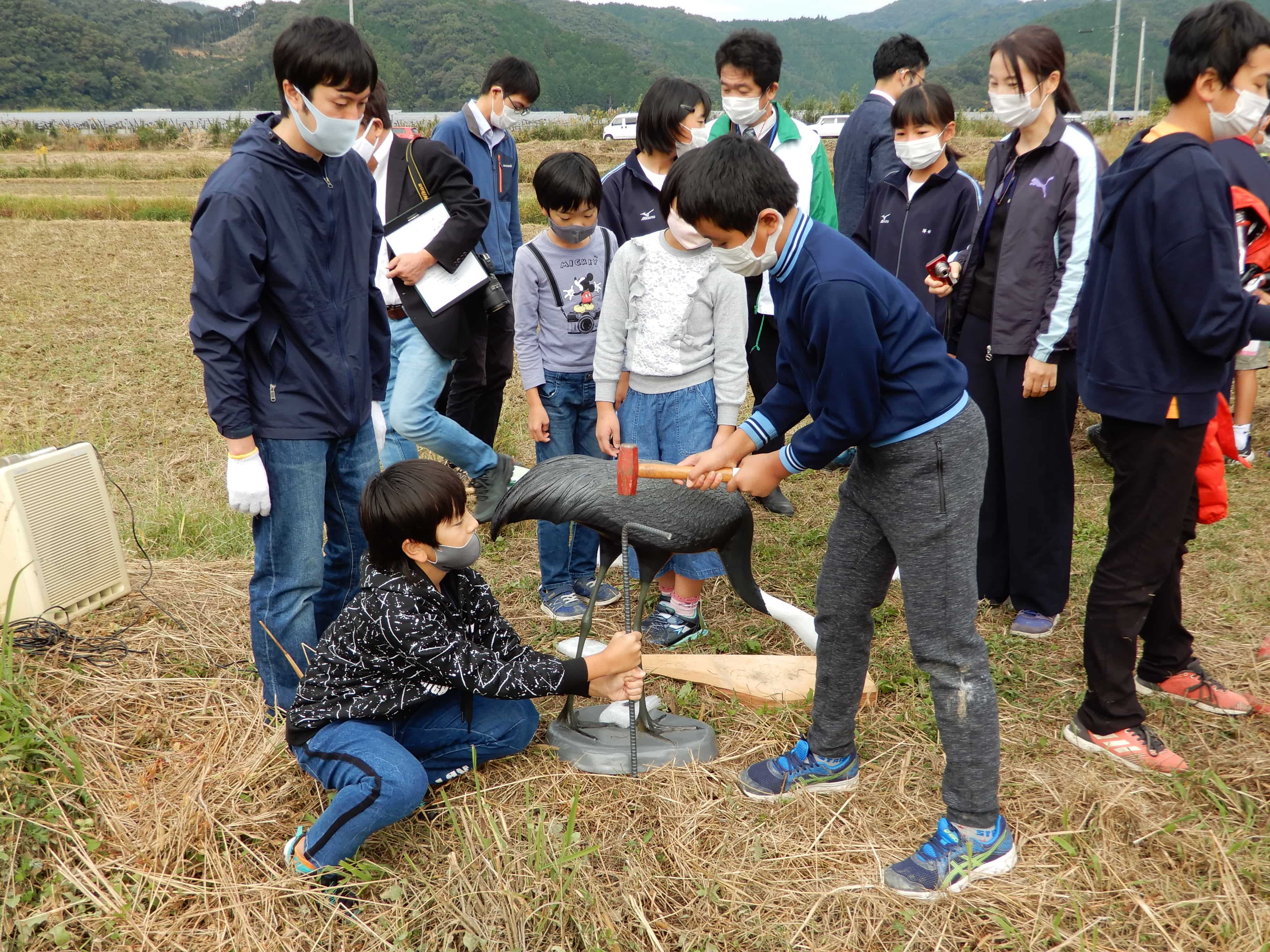 ツル類が渡来する時期となり、地元の東中筋小学校6年生と東中筋中学校の1年生を迎えて、恒例の学習会を行いました。