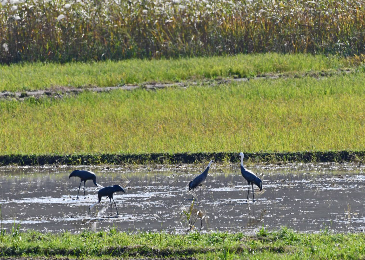 デコイ3体とナベヅル1羽