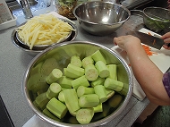 ■平成24年8月23日(木)ヨンデンプラザにて、第6回地元料理研究およびレシピ作成事業を開催。今年も、西土佐商工女性部の皆さんを招いて、一緒に料理を作成しました。