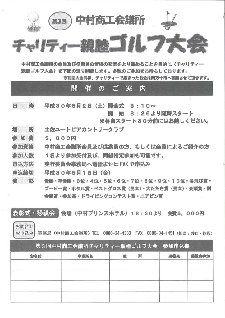 第3回中村商工会議所チャリティー親睦ゴルフ大会開催のお知らせ